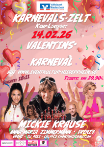 Jetzt noch Tickets für den Valentinskarneval in Kamp-Lintfort sichern: https://www.eventkultur-niederrhein.de/valentins-karneval